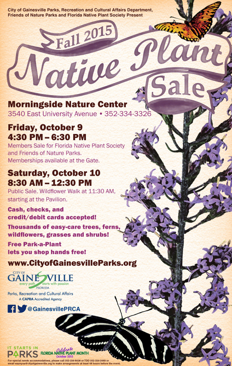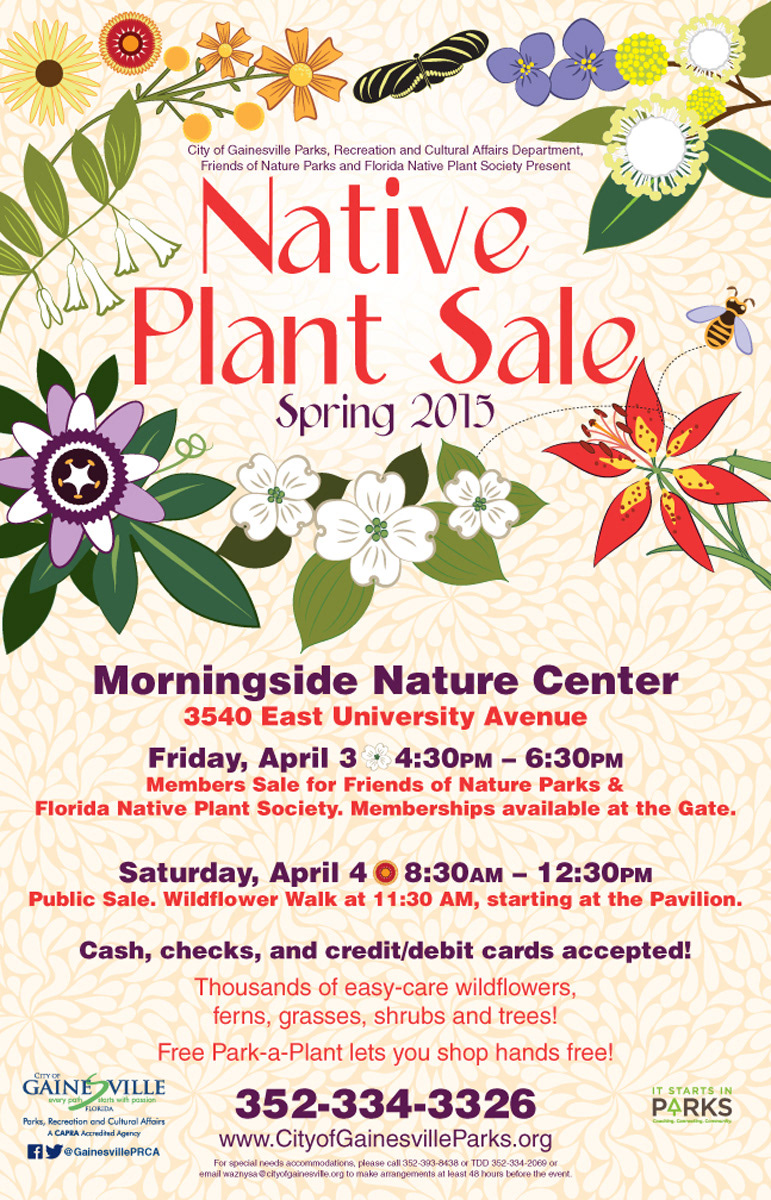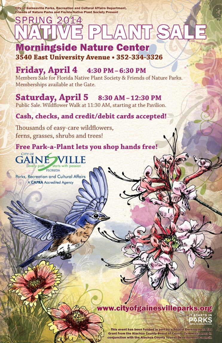 Poster design for an biannual Native Plant Sale at Morningside Nature Center. The posters rotate in illustration styles, from a flat, more patterned look to a drawn, more organic style.