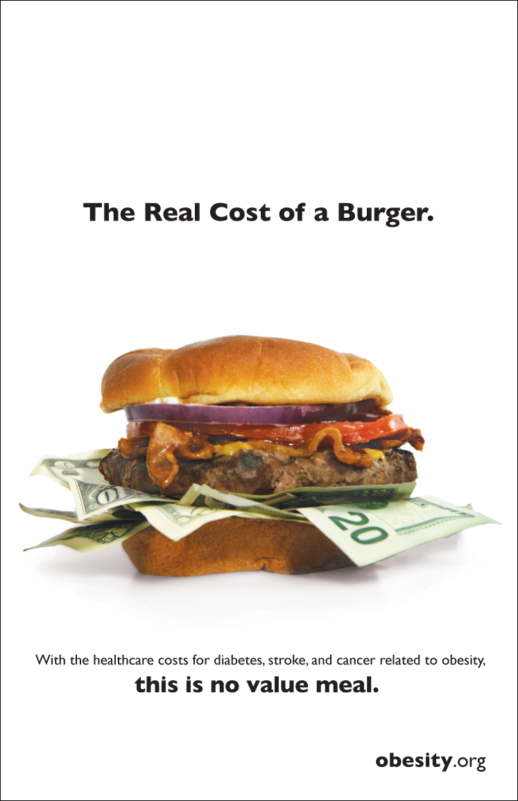 Student poster project for a public service campaign for Obesity.org. I developed the concept, the photography and digital composite. 2007-2008 Local Student Gold ADDY Poster Design - The Real Price of a Burger
